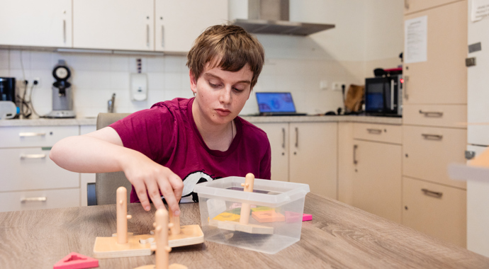Bij Structuur (lokaal 2) bieden we dagbesteding aan mensen met een verstandelijke beperking én een extra ondersteuningsbehoefte in communicatie. Dit kan komen door autisme, een taalontwikkelingsstoornis, gehoor- of visuele beperking, of moeilijk verstaanbaar gedrag.