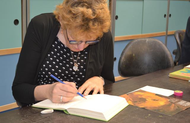 Karin vertelt: "Ik vind het leuk om te tekenen en kleien. Ik ben dan op mezelf en dat geeft me een rustig gevoel. Ik wil gewoon lekker bezig zijn; dan heb ik geen tijd om te piekeren. Als ik een minder goede dag hebt, helpt tekenen en kleien mij om van ROOD weer naar GROEN te komen. Dan ben ik gelukkig. Ik hou van gezelligheid en troost mensen graag. Het is fijn in het atelier met Nicole, de kunstenares die ons begeleidt. Ze helpt me ook met de regels in het atelier en in de groep. Daar leer ik van."