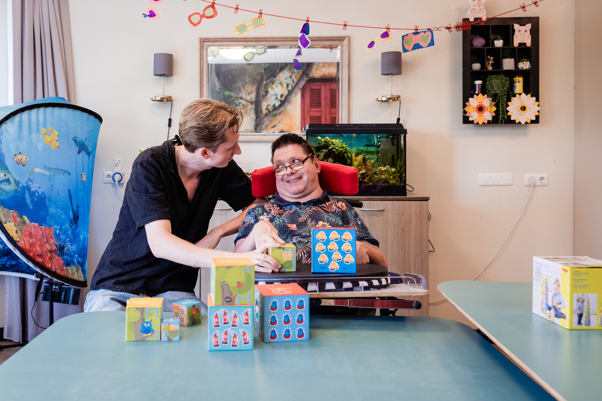 Belevingsgerichte dagbesteding draait om plezier, rust en het prikkelen van je zintuigen in een veilige en vertrouwde omgeving. Je doet activiteiten die passen bij jouw interesses, tempo en beleving. Samen zorgen we voor structuur in de dag en een goede balans tussen prikkels en ontspanning. Je wordt begeleid op een manier die bij jou past, met ruimte voor nabijheid en individuele aandacht.