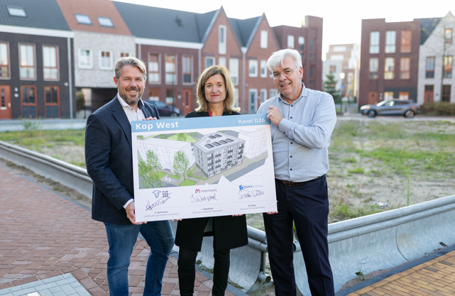 Met drie ferme handtekeningen tekenden de gemeente Purmerend, Intermaris en Prinsenstichting afgelopen donderdag voor de komst van een nieuw woongebouw aan de Pleinbuurt in Kop West. Woningcorporatie Intermaris wil op deze locatie 18 sociale woon- en zorgappartementen en 4 flex-kamers bouwen voor Prinsenstichting. Daarvoor sloot Intermaris al eerder deze maand een koop- en realisatieovereenkomst met de gemeente Purmerend. Samen met Intermaris ondertekende Prinsenstichting een huurovereenkomst.